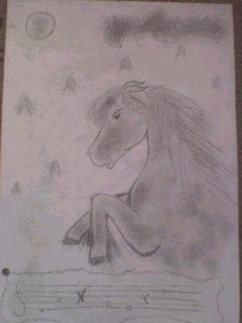 The Riddle...(mno...jsem nevěděla co kreslit,tak jsem si vzpoměla,když jsme hráli na HP tak moje postavička našla nějaký papírek s nápisem a s kresbičkou (nejspíš koníka) v lese...mno...tak jsem se pokusila a vyšel z toho tenhle obrázek =)